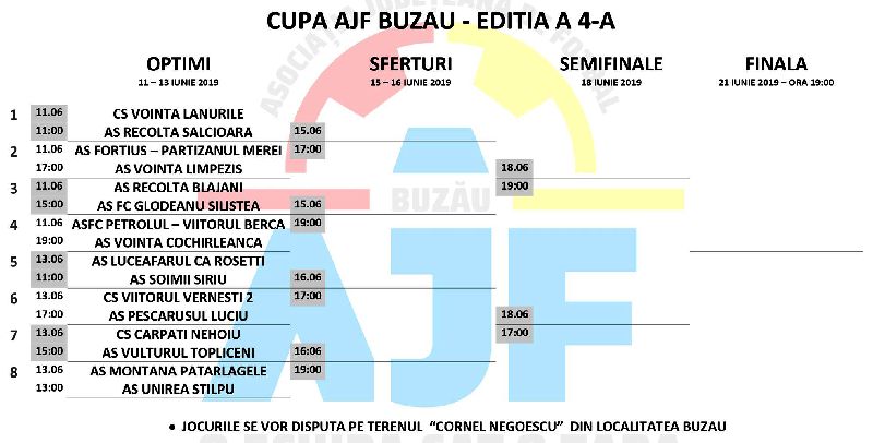 Pentru al patrulea an consecutiv, Asociaţia judeţeană de Fotbal Buzău organizează “Cupa AJF”, competiţie rezervată juniorilor A1 şi care are ca scop depistarea de noi talente din fotbalul autohton.