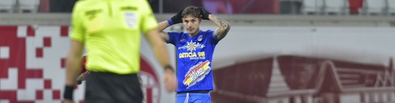 Exasperat de gafele în lanț ale fundașuui său, Neagoe îl scoate instantaneu pe Ferraresso, fiind introdus în teren Denis Dumitrașcu. Cu sacii în căruță și punctele în cont, gazdele nu mai forțează, iar oaspeții sunt incapabilide mai mult. Arbitrul pune punct primei reprize, nu înainte de a îi acorda un cartonaș galben lui Tavares.