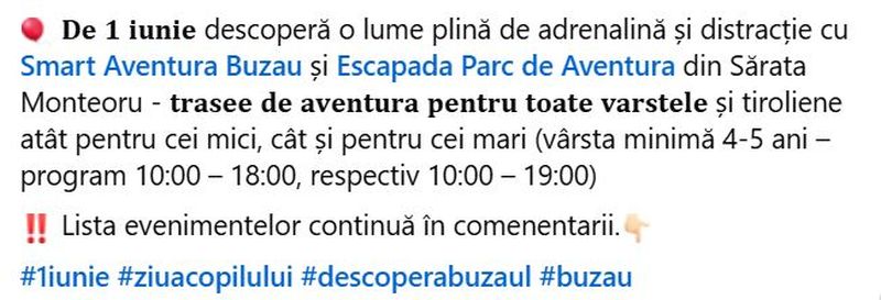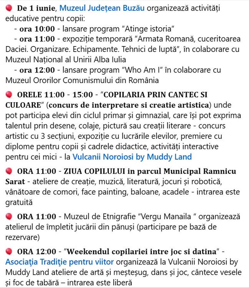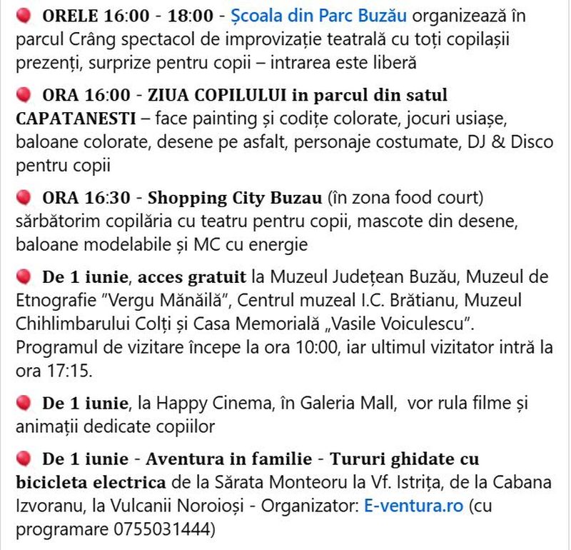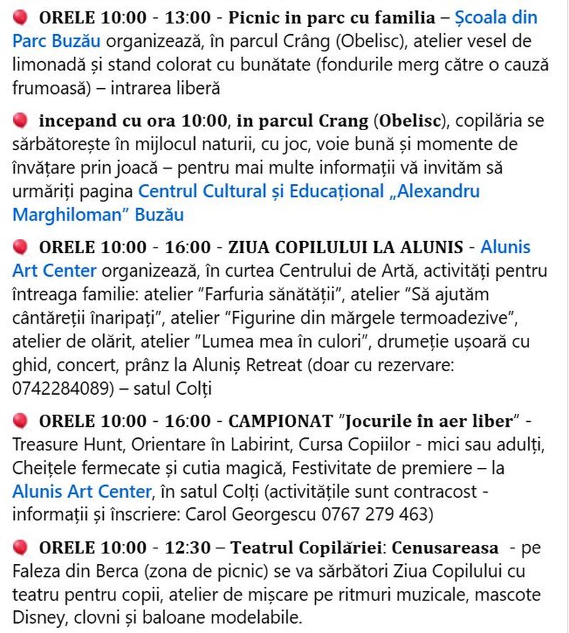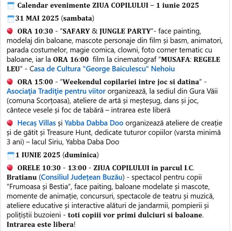 Consiliul Județean invită toți copiii și părinții să sărbătorească împreună Ziua Copilului pe 1 iunie în Parcul I.C. Brătianu. Activitățile sunt organizate în parteneriat cu Teatrul „George Ciprian”, Muzeul Județean, Direcția de Asistență Socială și Protecția Copilului,
