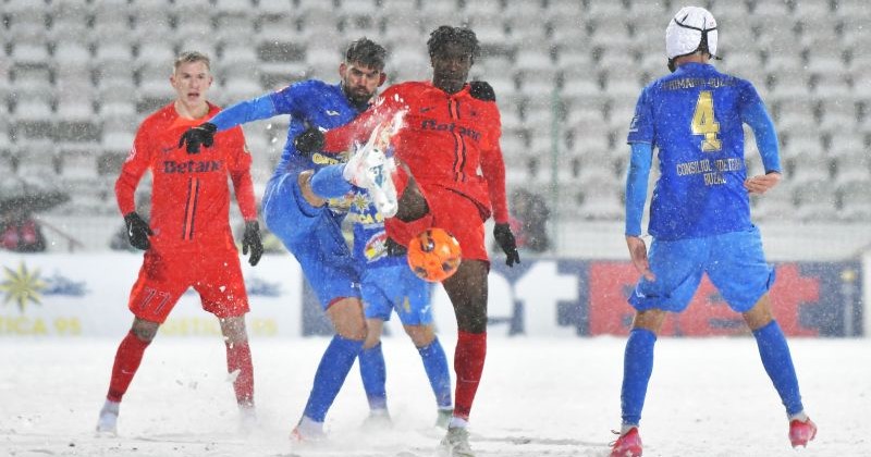 „Iadul alb” s-a abătut asupra arenei din vecinătatea Crângului cu patru ore înainte de debutul jocului. Venită la Buzău între două meciuri europene de maximă importanță, FCSB a dat piept cu furia dezlănțuită a naturii, un adversar mult mai periculos decât