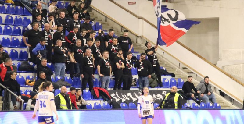 Deși ignorați total în depasări și interziși la antrenamente în sala proprie, la inițiativa noului antrenor (sau nu!), fanii Gloriei au încurajat și de această dată echipa. De asemenea, Anamaria Simion și Ana-Maria Mîrcă Olariu, foste jucătoare ale Gloriei, au fost primite cu multă simpatie de public. De partea cealaltă, o micuță dar inimoasă galerie de la Mioveni și-au încurajat favoritele, iar a final s-au bucurat împreună cu acestea.