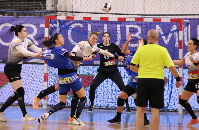 Jocul a debutat cu echipa oaspete la conducere, care a avut avantaj constant de 1-2 goluri pe tabelă, dar fetele echipate în alb au revenit de fiecare dată. În minutul 21 frumoasa şi talentata Alina Czeczi transformă o aruncare de la 7 metri şi aduce egalitatea la 9, iar peste câteva zeci de secunde un " trasor"expediat de Bianca Harabagiu găseşte ţinta şi duce gazdele pentru prima oară în avantaj. Avantaj pe care fetele de la Buzău aveau să îl păstreze, ba chiar să îl majoreze, până la finalul jocului. La pauză, tabela consfinţeşte rezultatul de 15-12 în favoarea echipei gazdă.